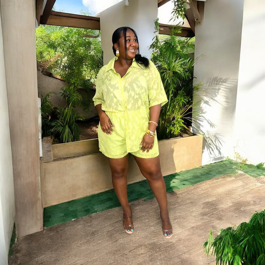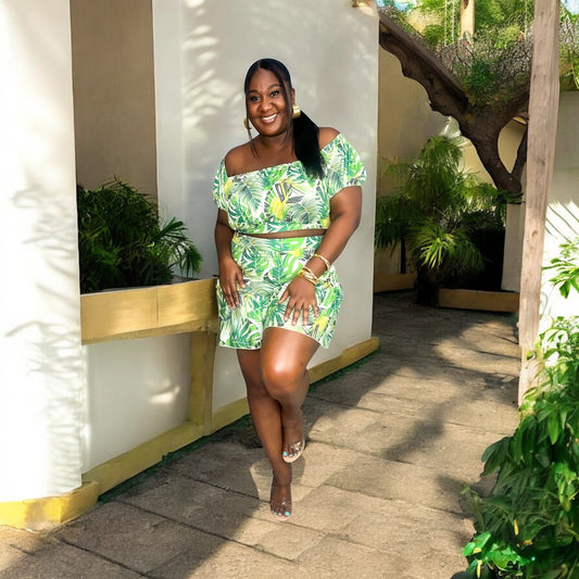 Tropical Paradise Off Shoulder Shirts Set – Green