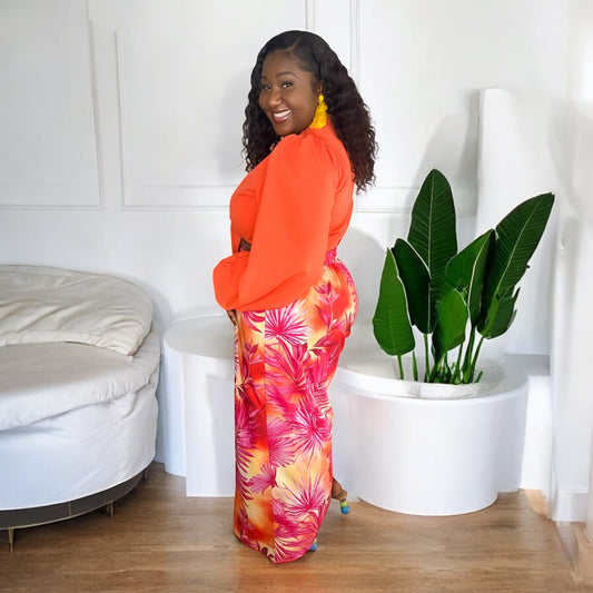 Island Sunset Slit Skirt – Coral & Palm Print