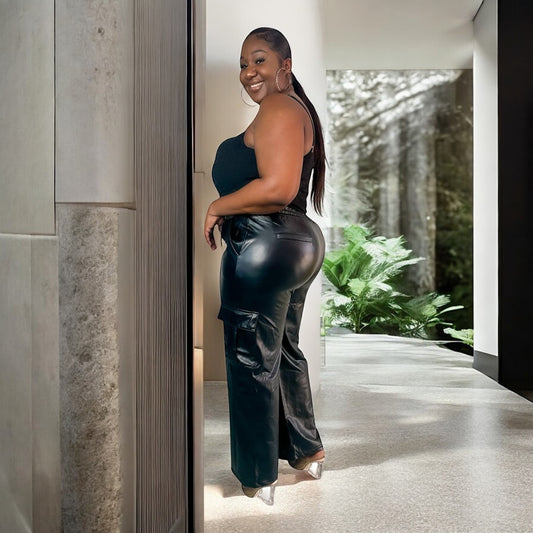 Black Cargo Faux Leather Pants