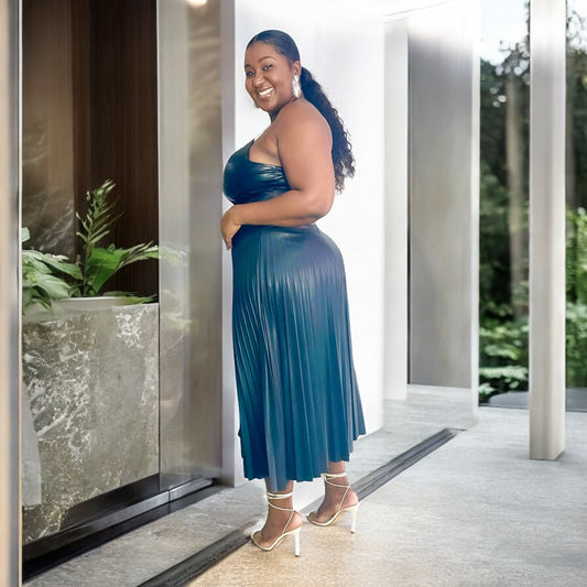 Pleated Faux Leather Midi Skirt