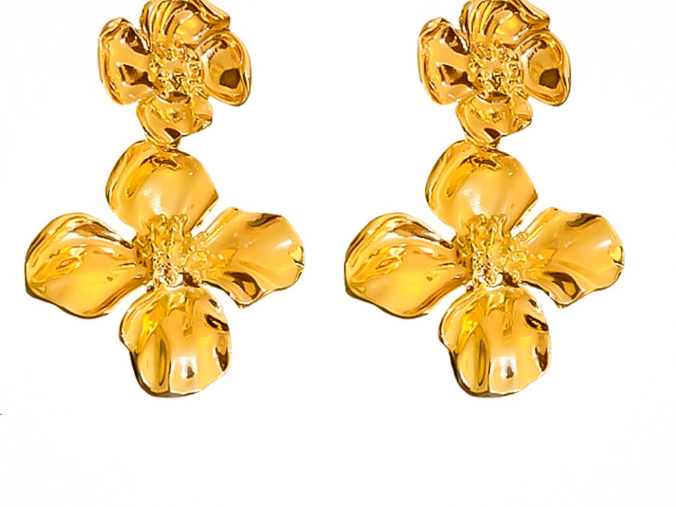 Sculpted for the bold and beautiful, these shiny gold floral earrings add a luxe garden vibe to any outfit. Lightweight yet striking—ideal for brunch, dates, or spotlight moments.